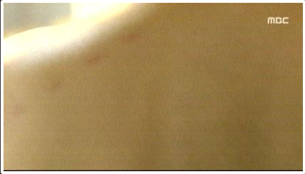구가의 서 3 회에서 조관웅을 죽이려다 칼에 맞아 생긴 어깨의 흉터를 보여 줌으로써