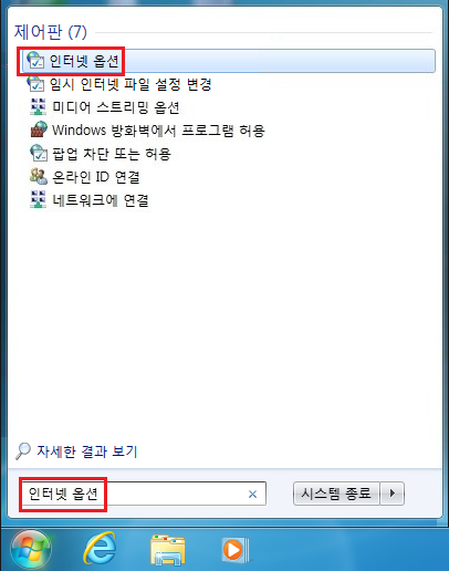 혹시라도 인터넷 옵션을 열지 못하시는 분들을 위한 설명입니다.