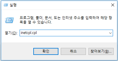 "inetcpl.cpl"이라고 적고 엔터하면 인터넷 옵션이 뜹니다.
