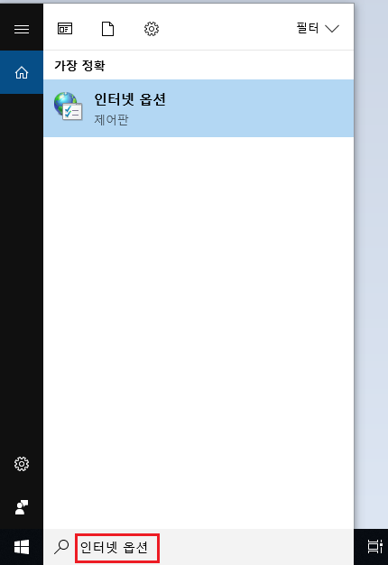 인터넷 옵션이라고 적으면 보이는 인터넷 옵션을 클릭하면 됩니다.