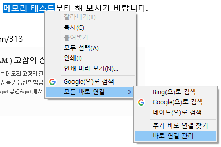 바로 연결이란 웹 페이지의 일정 부분을 드래그한 후에