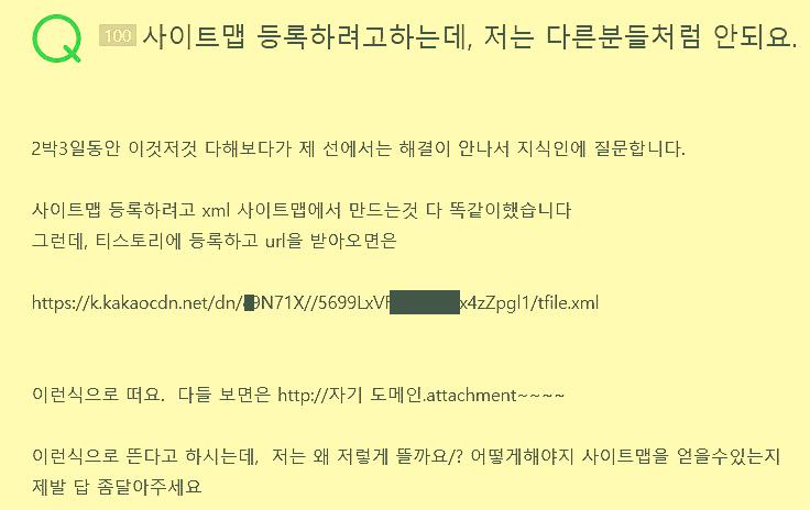 사이트맵 XML 파일을 만들어서 티스토리 포스트에 등록 후에 얻는 파일 주소가 이상해서