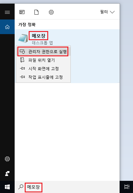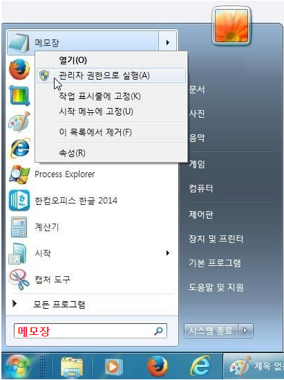 메모장을 관리자 권한으로 실행하는 방법은