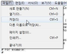 그러므로 변경 후에 저장을 할 때는 꼭 메모장의 메뉴 줄에서 파일> 저장을 클릭해서 저장하시기 바랍니다.
