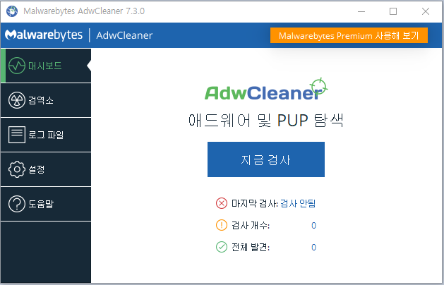 ※ Malwarebytes AdwCleaner는 무료 프로그램이고