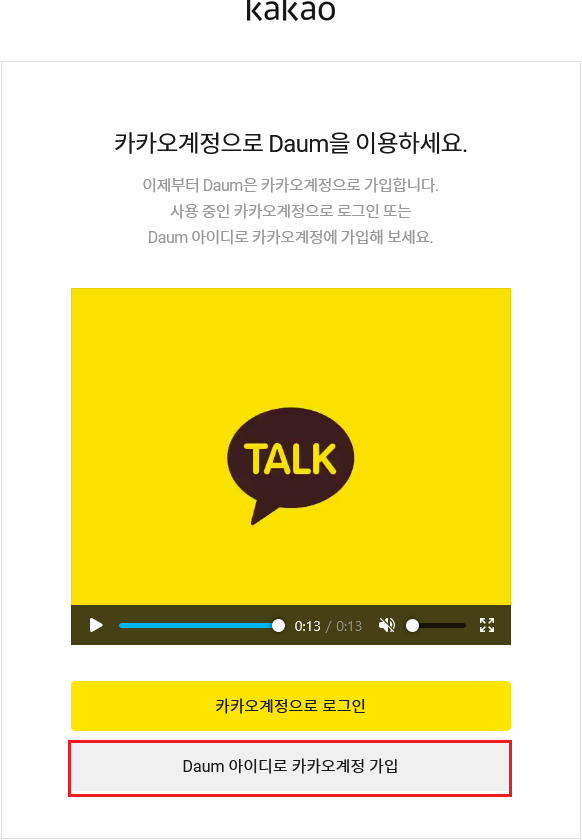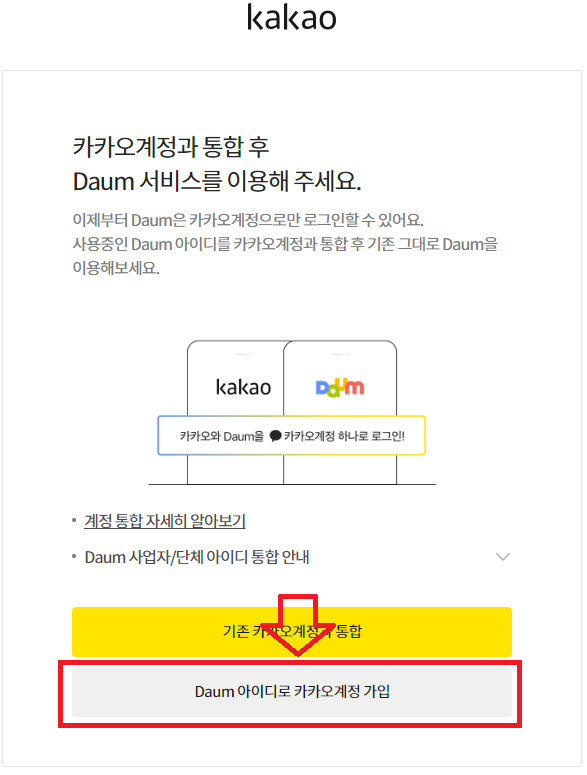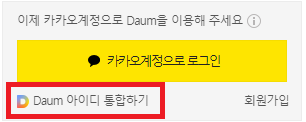 카카오 아이디로 통합하지 않은 분들은 다음 아이디로 로그인 시에