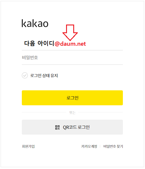통합 후에는 카카오 로그인 창에서 이전에 사용하던 다음 아이디에 @daum.net을 더 적고 로그인을 하는 거만 달라질뿐