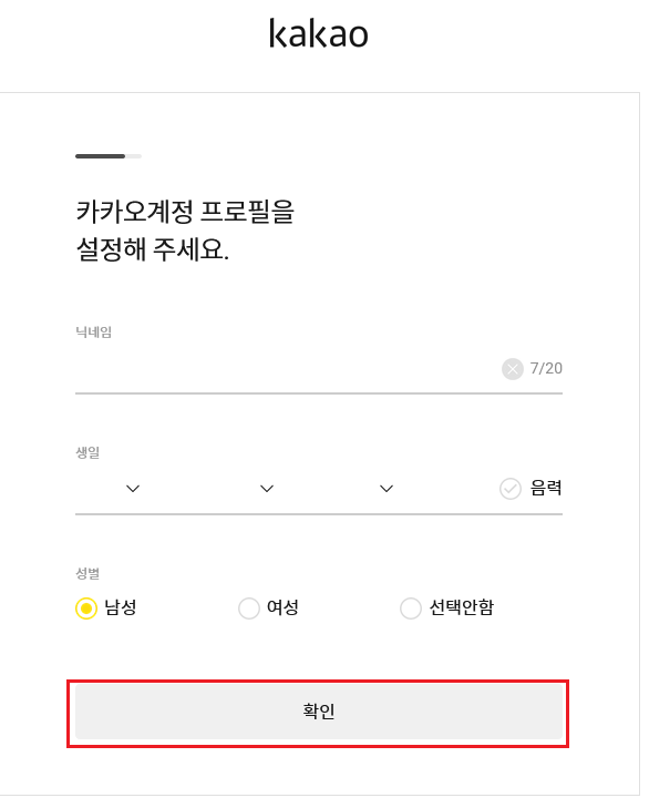 닉네임과 생일이 다음에서 사용하던 그대로 뜹니다.