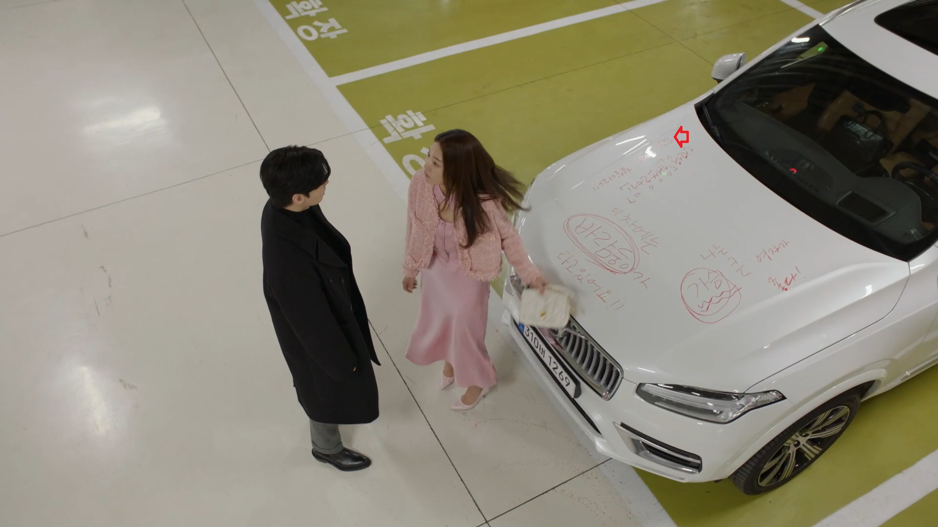 공태경이 오연두를 잡아 끌고 자기 차 앞으로 가서 차의 낙서 문제를 따지려는데