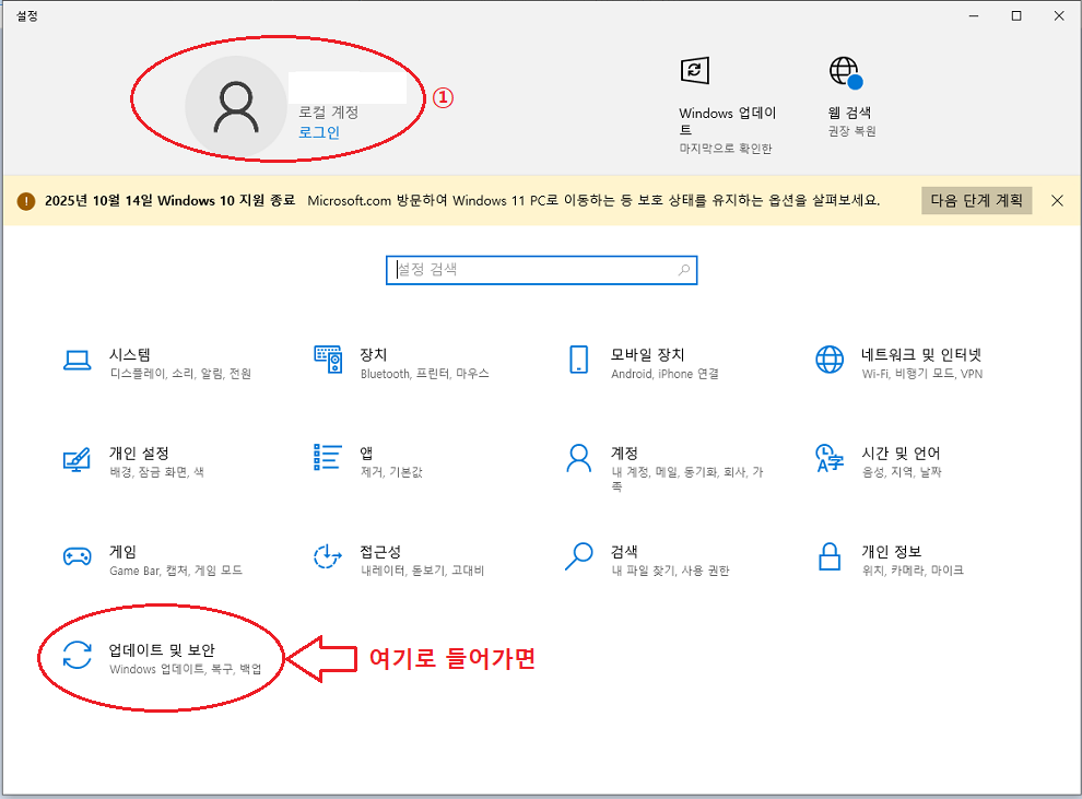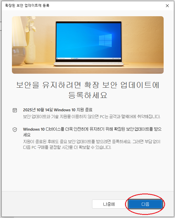 윈도우 10 보안 업데이트 지원은 2025년 10월 14일에 종료됩니다.