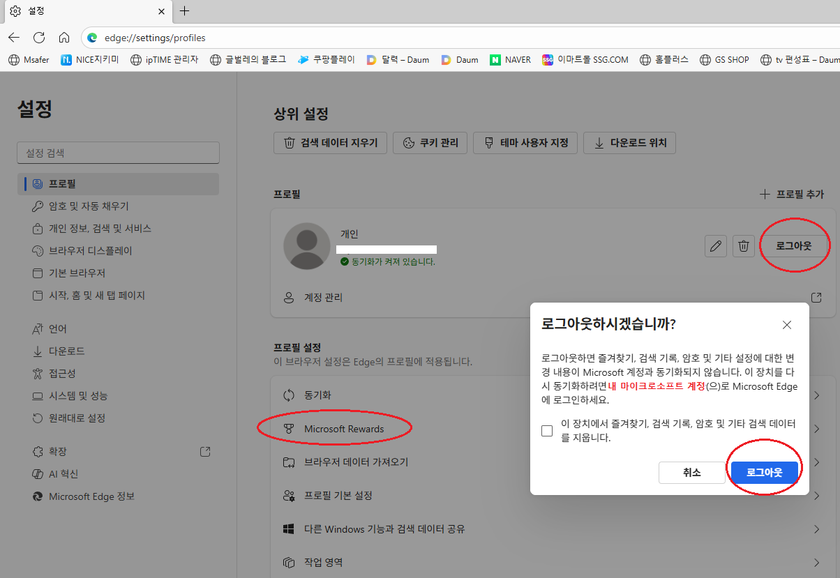 내 기본 설정 저장하고 동기화 작동 방법은 꺼져 있었는데
