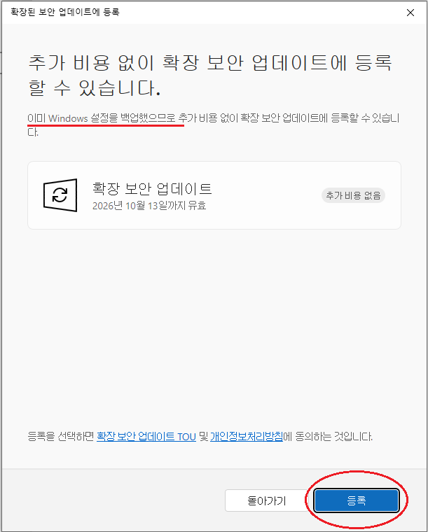 개인 사용자의 경우에는 윈도우 10 ESU 등록이 별거 아닌데