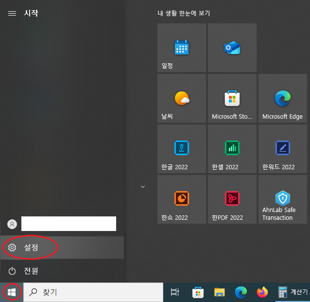시작> 설정을 누르면 뜨는