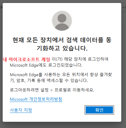 (아래 스샷에서 빨간 글자로 표시한 여기에는 내 마이크로소프트 이메일 아이디가 뜹니다.)