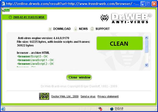 링크의 내용을 Dr.Web의 서버로 보낸 다음 검사를 하고 난 후,