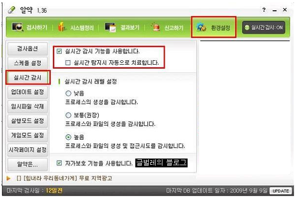 다른 백신을 사용하는 분들께서도 실시간 감시 설정을 살펴보시고 꼭 자동 치료 옵션은