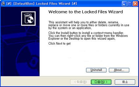 Locked Files Wizard 가 실행되면 다음과 같은 창이 뜹니다 .