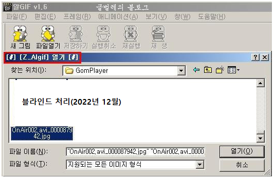 그럼 아래 그림처럼 알gif를 선택해 실행이 가능해집니다.