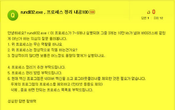 최근에 질문들을 통해 rundll32.exe와 관련된 질문을 두 번 정도 본 것 같아