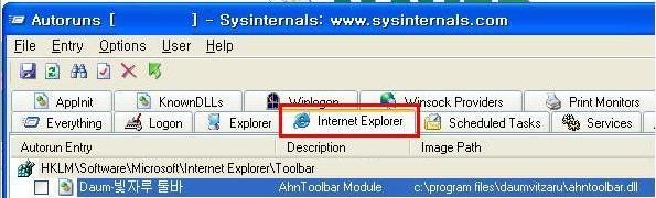 원치 않는 툴바나 사이드바등이 인터넷 익스플로러와 함께 실행되어