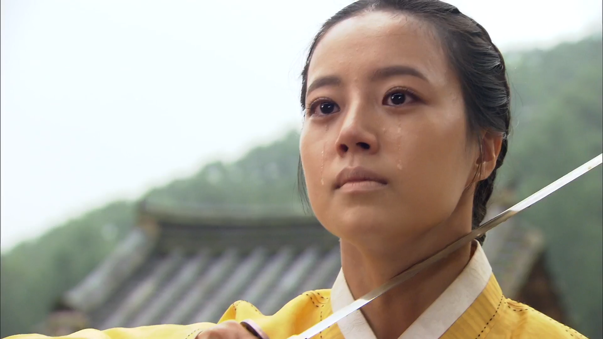 집을 나서려 하는데, 그때 세령은 칼을 칼집에서 뽑아 자기 목에 댑니다.