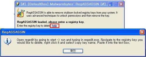 이 경우는 RegASSASSIN이 띄우는 메시지를 무시하고 끝까지 실행해도