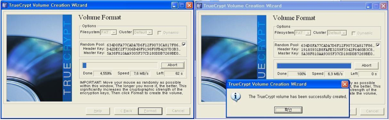 이제 Format을 누르면 보안 영역 생성이 진행됩니다.
